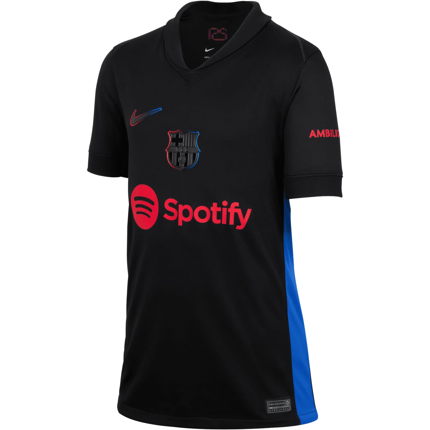 The FC Barcelona 2024–25 away jersey, designed by Nike, marks a bold departure from tradition, embracing an all-black color scheme for the first time since the 2020–21 season. This sleek design is a tribute to the club's 125th anniversary and draws inspiration from their inaugural 1899 kit.