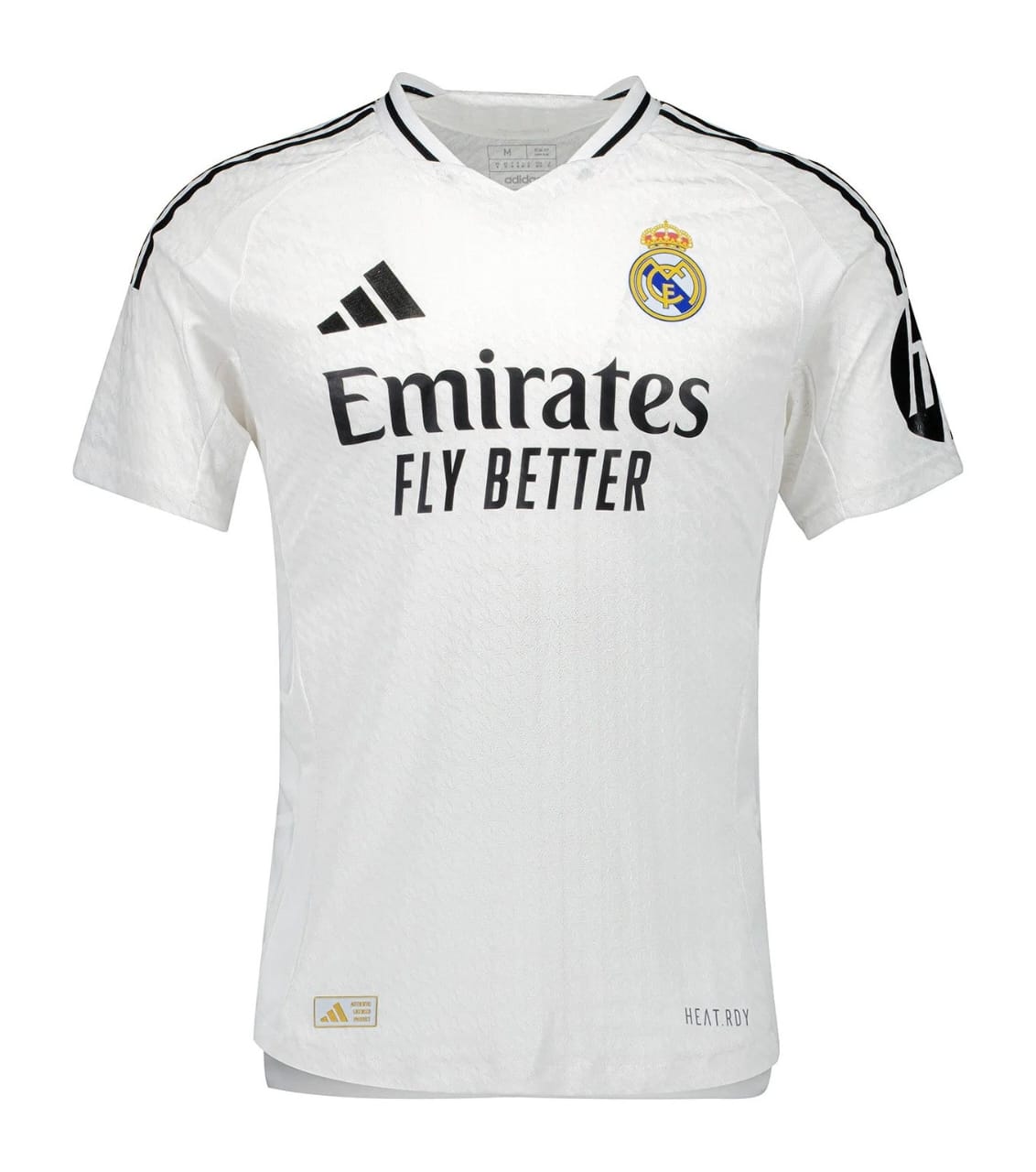 When adidas designed Real Madrid's home kit, they looked to the long-held traditions of the club's famous city. Inspired by the 'chulapo' outfits worn at Madrid's annual San Isidro Fiesta, the houndstooth-style patterning on this authentic football jersey gives it a dash of style. Also featuring ventilating HEAT.RDY and a heat-applied club badge, this top is made for the pitch.This product is made with 100% recycled materials. By reusing materials that have already been created, we help to reduce waste and our reliance on finite resources and reduce the footprint of the products we make.